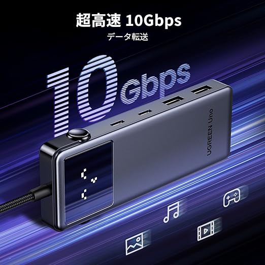 【UGREEN特別なロボットデザイン】6-in-1 Uno USB C ハブには、4 つのスマート ステータス絵文字が搭載されています。2 つの 10 Gbps USB-C 3.2 Gen 2 ポート、2 つの 10 Gbps USB-A 3.2 Gen 2 ポート、4K@60Hz HDMIポート、PD100W 充電ポートで、ノートパソコンの USB-C ポートの可能性をさらに引き出します。