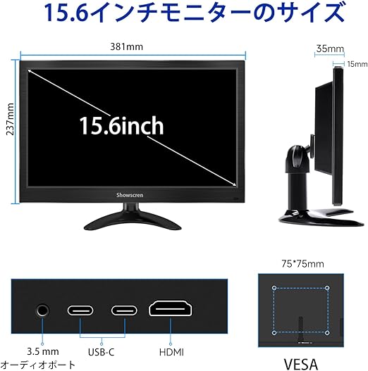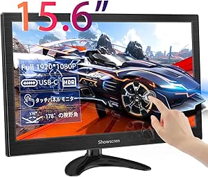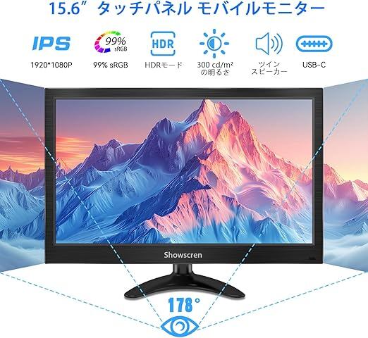 Showscren モバイルモニター 15.6インチ タッチパネル モニター1920x1080P HDMI/USB-C HDR 小型モニター スピーカー内蔵、PC/ラップトップ/携帯電話/PS4/5/Switchど対応 | PCBASE