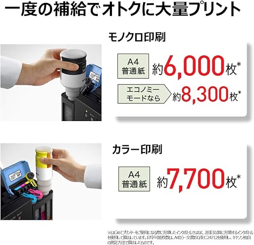 A4普通紙インクコスト:モノクロ約0.4円(税別)、カラー約0.9円(税別)
