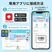 Bluetoothポータブルプリンタ – M110ポータブルラベルプリンター、ワイヤレスデザインで、バッテリーが不要。Bluetooth 5.0で最大10 mの通信が可能です。携帯電話に簡単に接続できます