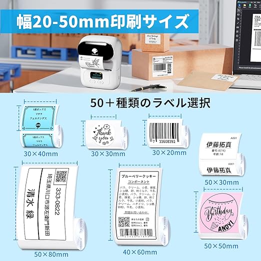 ラベルライター Memoqueen M110 多機能ラベルプリンター サーマルプリンター スマートアプリ編集 Bluetooth接続 バーコード/値札/食品ラベル/パッケージラベル/アドレスラベル 本体にはロール状のラベル用紙が付属しています 40×30mmホワイトラベル100枚 | PCBASE