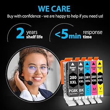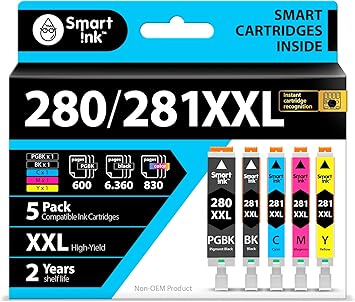 スマートインク互換インクカートリッジ。Canon 281 280 PGI-280XXL CLI-281XXL (5コンボパック)。Canonプリンター Pixma TR8520 TS9120 TS6120 TR8620 TR8620a TS6320 TR7520 PGBK/BK/C/M/Y用。 | PCBASE