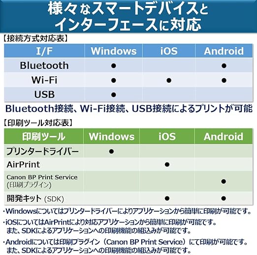 1台でBluetooth接続、Wi-Fi接続、USB接続によるプリントが可能。また、標準で給紙ガイドも同梱されているため、別途購入する必要はありません。