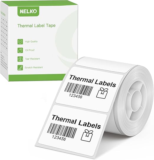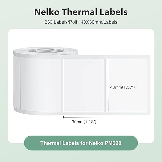 NELKO ラベルシールトランスペアレント PM220対応 感熱ロール紙 感熱ラベルプリンター用 テープ ロール紙 ステッカー 強粘着 耐水 宛名印刷 整理整頓 収納 値札 40x30mm 230枚/巻(ホワイト)