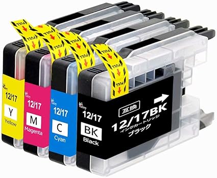 ブラザー 互換インクカートリッジ LC12(B12) LC17(B-17) Brother用 LC12-4PK LC17-4PK 4色4本セット LC12BK×1 LC12C×1 LC12M×1 LC12Y×1 (ブラック、シアン、マゼンタ、イエロー)増量タイプ 残量表示可能 新互換チップ搭載 インク工場 | PCBASE
