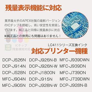 フクタマ LC411 ブラザー プリンター用 LC411-4PK 4色セット brother プリンター用 互換インクカートリッジ LC411BK LC411C LC411M LC411Y 対応機種: DCP-J526N DCP-J914N DCP-J926N-W DCP-J1800N MFC-J739DN MFC-J904N MFC-J939DN 等 (4色セット) | PCBASE