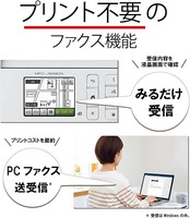 ・機能:プリント/コピー/スキャン/ファクス/コードレス電話機対応、タッチパネル液晶:2.7型、手差しトレイ(1枚)、前面給紙