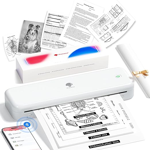 Phomemo M834 モバイルプリンター ポータブルプリンター サーマルプリンター 業務用プリンター ワイヤレス Bluetooth接続 A4サイズ スマホ対応 PC対応 ビジネス/家庭/学校/旅行用 ホワイト | PCBASE