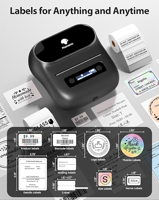 Phomemoの新バージョン - Phomemo M220ラベルプリンターは、日本製Romaプリントヘッドと20-80mmのプリント幅で、バーコード、缶、価格、衣類、QR、アイコン、住所ラベル、成分ラベル、出