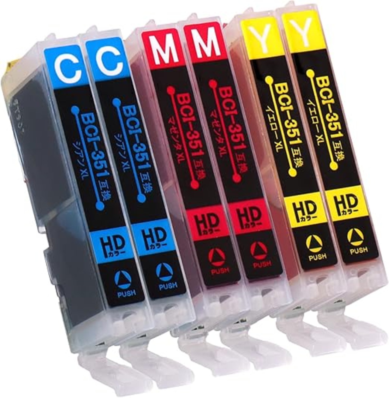 <セット内容> キヤノン 用 BCI-351XL 互換インク 大容量タイプのお得なカラーセット!【 BCI-351XLC 互換/ BCI-351XLM 互換/ BCI-351XLY 互換 各2本の6本セット】 ※メーカー純正品ではありません。純正品と同様にご使用いただける互換品です。※使用後もインクがカートリッジ内に残りますが、カラ打ち防止用の予備分ですので、異常ではありません。