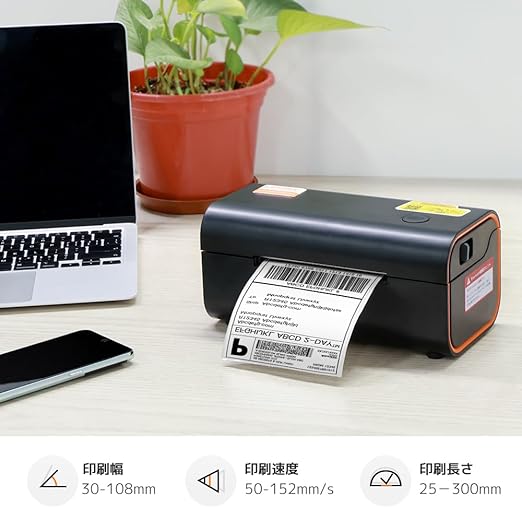 「最新モデルの感熱式プリンター」: 宅配便やラベル印刷に特化して設計されており、ビジネスの効率化を保証します。インクやカーボンリボンなどの消耗品は不要で、感熱紙一巻きでコストを抑えながら持続的でクリアな印刷効果を提供します。高品質な印刷を簡単に実現し、様々な印刷ニーズに対応でき、忙しい印刷作業を楽にこなすことができます。
