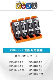 【インクのチップス】 エプソン(EPSON)用 KUI(クマノミ)互換 ブラック×4本セット 互換インクカートリッジ 増量版 残量検知対応 HDカラー採用 対応機種:EP-879AB EP-879AR EP-879AW EP-880AB EP-880AN EP-880AR EP-880AW セット内容:KUI-BK-L | PCBASE