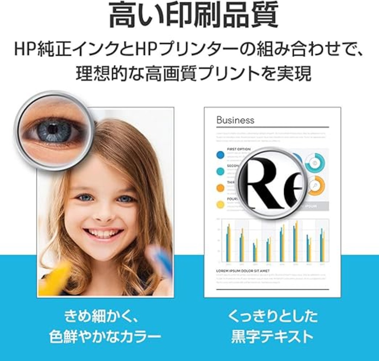 「HP純正カートリッジ」×「HPプリンター」の組み合わせで、印刷画質や発色・保存性において理想的な高画質プリントを実現します。