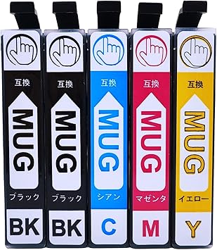 【対応機種】Epson (エプソン)EW-452A EW-052A プリンター。 【個別包装】パッケージ内容:インク5本。ブラック(MUG-bk)2本・シアン(MUG-c)1本・マゼンター(MUG-m)1本・イエロー(MUG-y)1本 合計5本パック
