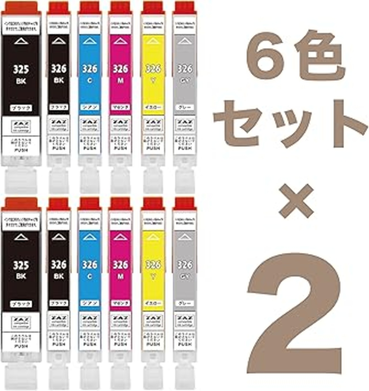 BCI-326+325/6MP 6色セット×2パック 互換インク ICチップ付き 残量表示可 6色セット×2パック(計12個入り)【ICチップ付】 対応機種:PIXUS MG8130 MG6130 MG5230 MG5130 MX883 iP4830 MX883 iX6530 MG8230 MG6230 MG5330 iP4930 [ZAZブランドオリジナル] [Amazon認定FFPパッケージ(H)] | PCBASE