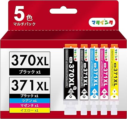 マタインク BCI-371XL BCI-370XL 互換インクカートリッジ キヤノン(Canon)対応 371 370 大容量タイプ 5色セット bci-370 bci-371 互換インク 対応機種:TS5030 TS5030S TS6030 TS8030 TS9030 MG5730 MG7730F MG7730 MG6930 説明書付 残量表示 個別包装 | PCBASE