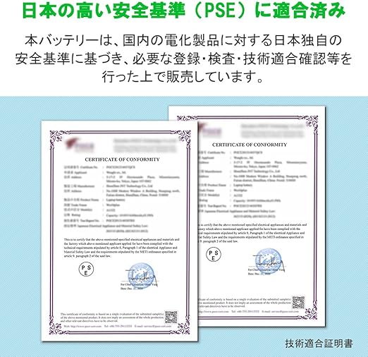 ◆日本独自の高い安全基準(PSE)に適合済。◆万全な防止機能:過電流保護・過充電防止・過放電防止、短絡保護などの機能付き。