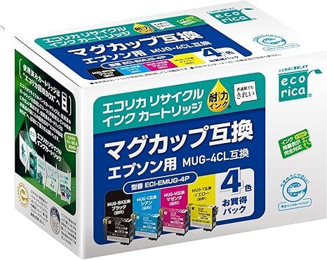 エコリカ エプソン マグカップ MUG-4CL対応リサイクルインク 4色パック EC-MUG-4CL-A 残量表示対応 【エコリカ封筒パッケージ】