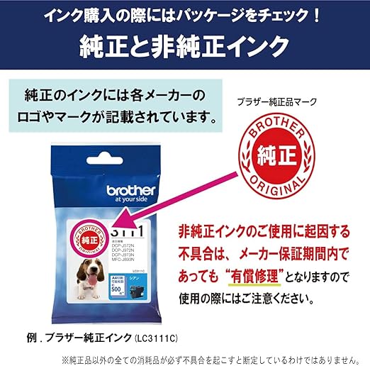 非純正インクをお使いになりますと製品本体の性能を十分に発揮できないだけでなく製品本体を損傷させる可能性がありますのでご注意ください。