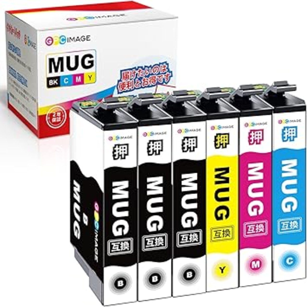 GPC Image MUG-4CL エプソン 用 インク マグカップ 4色パック+ MUG-BK ブラック 2本 (計6本) 増量タイプ エプソン 対応 マグカップ 純正と併用可能 Epson 用 インク マグカップ EW-452A EW-052A 対応の マグカップ 互換インク