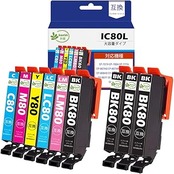 ★【セット内容】エプソン プリンター インク IC80 IC80L IC6CL80L 6色パック+黒3本 9本セット。つまり、増量版 ICBK80Lブラック黒4本+ICC8