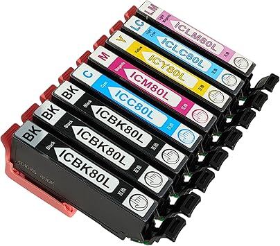 【個別包装】パッケージ内容:インク8本。ブラック(BK)3本・シアン(C)1本・ライトシアン(LC)1本・マゼンタ(M)1本・ライトマゼンタ(LC)1本・イエロー(Y)1本 合計8本パック。
