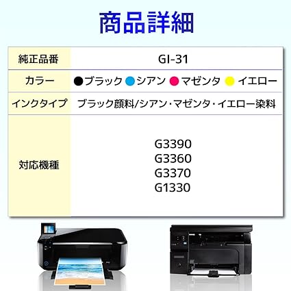 Canon GI-31 対応の互換インクボトルになります。 Canon純正品ではございません。