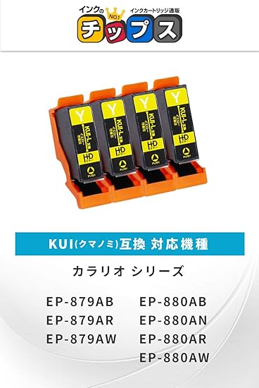【インクのチップス】 エプソン(EPSON)用 KUI(クマノミ)互換 イエロー×4本セット 互換インクカートリッジ 増量版 残量検知対応 HDカラー採用 対応機種:EP-879AB EP-879AR EP-879AW EP-880AB EP-880AN EP-880AR EP-880AW セット内容:KUI-Y-L | PCBASE
