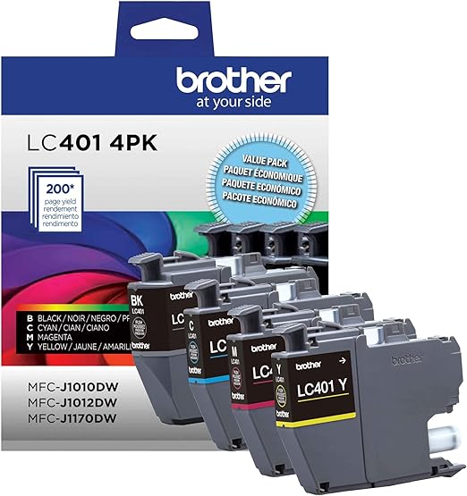 優れたインクジェット品質を実現:LC4014PK 4個パックの標準印刷可能カラーインクカートリッジは、Brotherインクジェットプリンターとシームレスに動作するように設計されており、カートリッジあたり最大200ページまで優れた結果と信頼性の高いパフォーマンスを提供します。 (1)