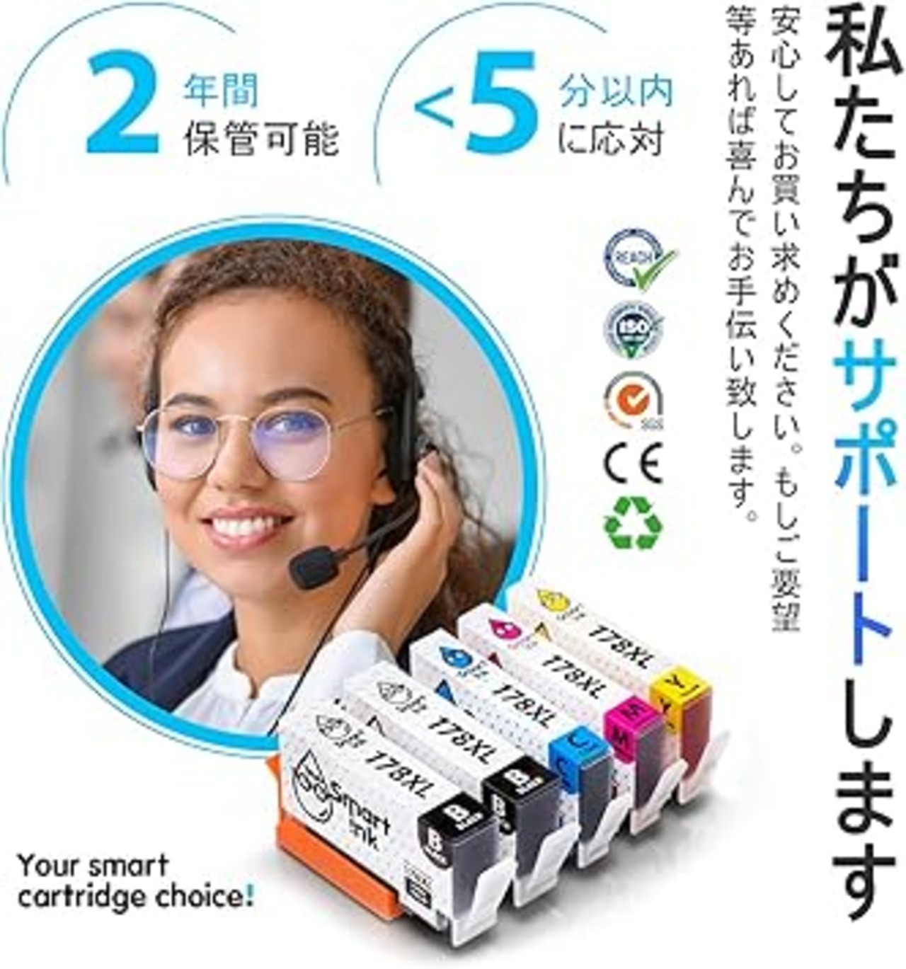 【Smart Ink】互換インクカートリッジ 交換用 HP 178 178XL (4BK & 2/C/M/Y 4色10本パック) 対応機種:DeskJet 3070A 3522 3520 3525 3526 4610 OfficeJet 4620 4622 Photosmart 5510 5512 5514 5520 5521 5524 5525 6512 6521 6525 C510a | PCBASE