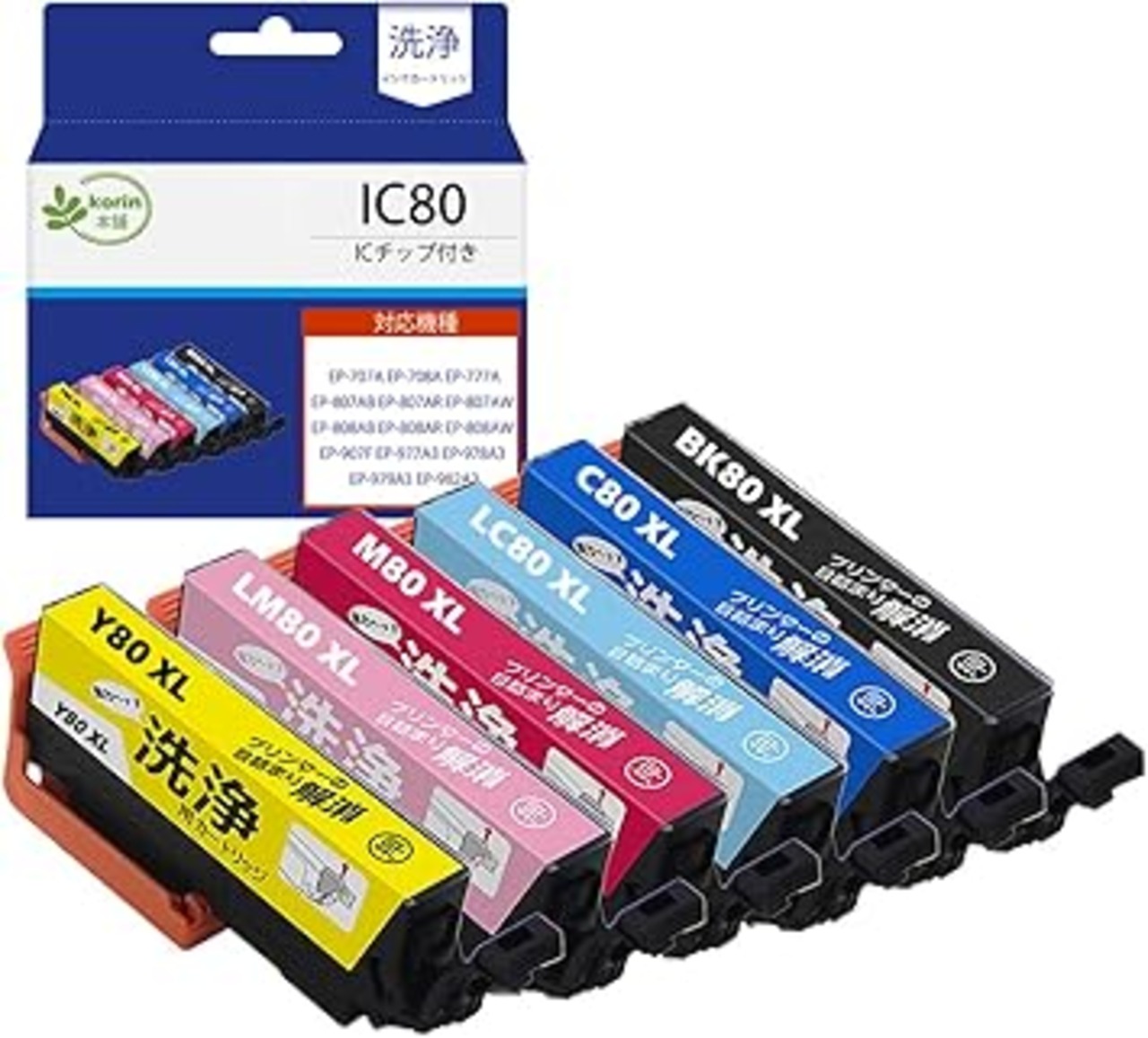 【korin本舗】IC6CL80L エプソン用 洗浄カートリッジ 洗浄クリーニング 洗浄液 IC6CL80 IC80 80L とうもろこし 6色セット(ICBK80 ICC80 ICM80 ICY80 ICLC80 ICLM80) インク目詰まり・カスレ解消 対応機種:EP-707A EP-708A EP-777A など | PCBASE