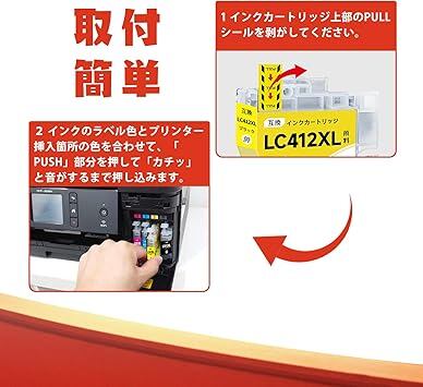 【高性能】最新ICチップ採用、プリンターに認識され、問題なく使えます。純正品LC412XL と同じ顔料インクを採用しており、鮮明な画質です。普通紙、専門用紙や写真用紙でも純正品に負けない印刷品質が実現できます。