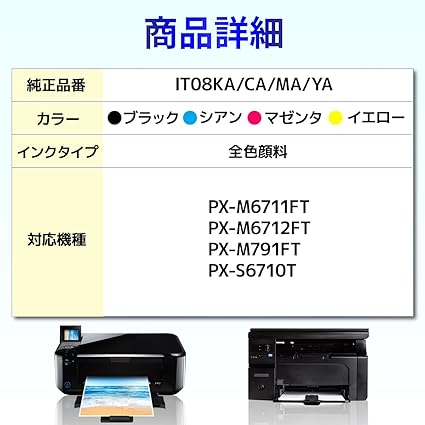 セット内容: IT08KA IT08CA IT08MA IT08YA 対応互換インクボトル(EPSON純正品ではありません)ブラック・シアン・マゼンタ・イエロー 各1個