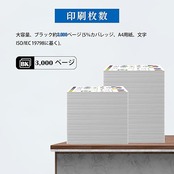 【印刷枚数】大容量、ブラック約3,000ページ (5%カバレッジ、A4用紙、文字 ISO/IEC 19798に基く)。