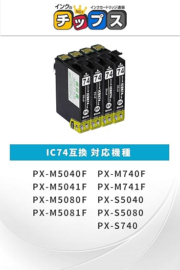 エプソン 用 IC4CL74 互換インク 【 ブラック4本セット 】 残量表示対応ICチップ搭載 対応機種: PX-M5040F / PX-M5041F / PX-M5080F / PX-M5081F / PX-M740F / PX-M741F / PX-S5040 / PX-S5080 / PX-S740 | PCBASE