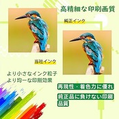 ★【詰まりなし】:粒子の細かいインクを採用しているため、耐久性、耐光性、着色力に優れています。プリンターヘッドの目詰まりを防ぎ、スムーズに印刷でき、速乾性に優れ、汚れが残りません。純正インクに劣らない高品質を実現し、純正との併用が可能です。