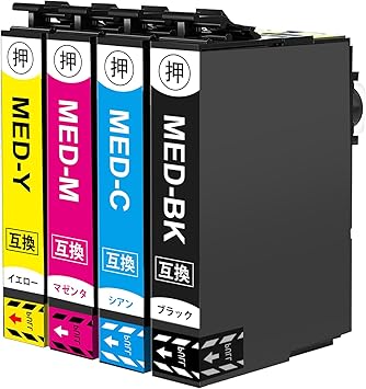 ★【商品内容】 エプソン用 MED 互換インクカートリッジ MED-BK (ブラック)1本、MED-C(シアン)1本、MED-M(マゼンタ)1本、MED-Y(イエロー)1本、合計4本.
