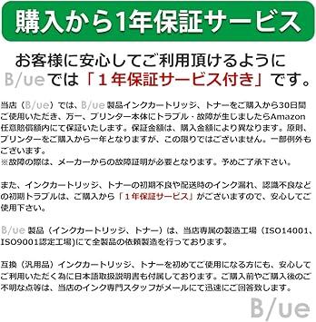 [保証サービス] 商品ご購入から一年間配送時によるICチップの損傷・認識不良・インク漏れ等の保証。プリンター購入から一年以内の破損故障の