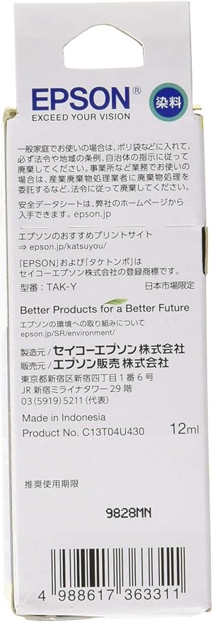 エプソン 純正 インクボトル タケトンボ TAK-Y イエロー 使い切りサイズ