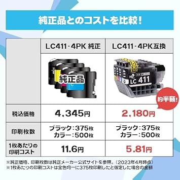 [商品内容] ブラザー(brother)用 LC411シリーズ 4色セット 互換インクカートリッジ ICチップ搭載で残量表示対応