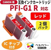 【商品内容】キヤノン PFI-G1 対応 互換インクカートリッジ レッド 2本セット。純正同様に目詰まりしにくい高品質顔料インクを採用しているため、耐久性があり、純正品に近い発色。【セット内容】互換カートリッジ レッド 2本セット