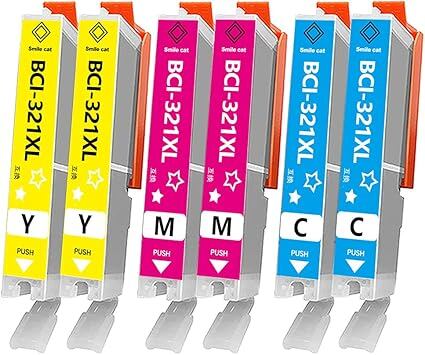 <仕様>キャノン用BCI-321XL(2C/2M/2Y)互換インクカートリッジ 6色セット 増量タイプ (※商品の製造時期によっては、パッケージやラベルなど外観が画像と違う場合がこざいますが、製品品質や対応機種には違いはごいません。何卒ご了承ください。)