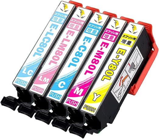 【稲妻トナー】エプソン用 IC80L 80L インク 互換インクカートリッジ ICY80L ICC80L ICM80L ICLM80L ICLC80L とうもろこし大容量タイプ 残量表示 5色セット 計5本 EP-707A EP-807AW EP-777A EP-708A EP-808AWなど | PCBASE